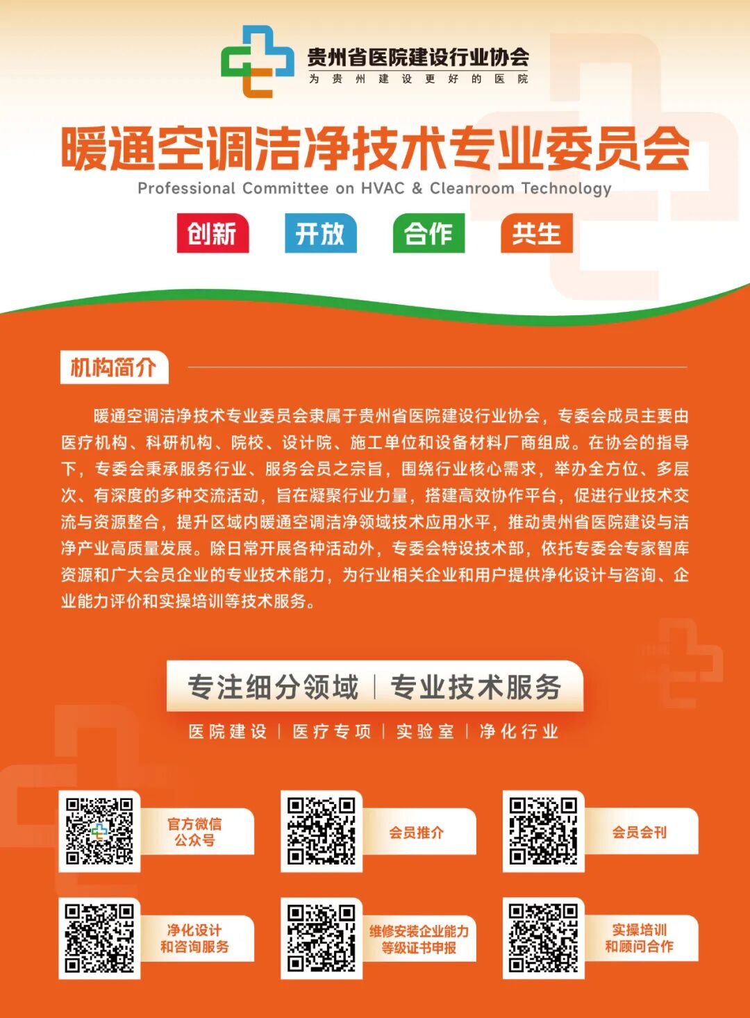支持单位:重庆市室内环境净化行业协会、成都市消毒协会空气净化与消毒专业委员会、贵州省民营医疗机构协会、贵州省社会办医疗机构协会、贵州省大健康产业联合会、贵州省建设工程造价管理协会、贵州省建设工程招标投标协会、贵州省暖通行业协会、贵州省制冷学会、贵州省工程勘察设计协会公共卫生与健康分会、贵州大学土木工程学院、牛侃暖通、i传媒战略合作:贵阳睿亿泰医特科技有限公司、贵州美的暖通与楼宇设备销售有限公司特邀协办:贵州仁泰净化工程有限公司、贵州洁仁达净化科技有限公司、贵州百灵安装工程有限公司、青岛海尔生物医疗股份有限公司、北京环都拓普空调有限公司、南宁卫康医疗器械有限公司西南公司、苏州科恩净化科技有限公司、贵州格力商用空调销售有限公司协办单位:东莞市伟一环境科技有限公司、四川启典鸿宇装饰材料有限公司、麦克维尔中央空调有限公司重庆分公司贵阳事务所、佛山市莱润新型建材有限公司、广西稳洁净化科技有限公司、江苏肯菲特新能源有限公司、杭州年安科技有限公司、四川鸿霖科技有限公司、东莞市九州环境科技有限公司、中恒新意医疗科技(成都)有限公司、东莞市利安达环境科技有限公司、广东宝晨空调科技有限公司、深圳英创能源环境技术有限公司贵阳分公司